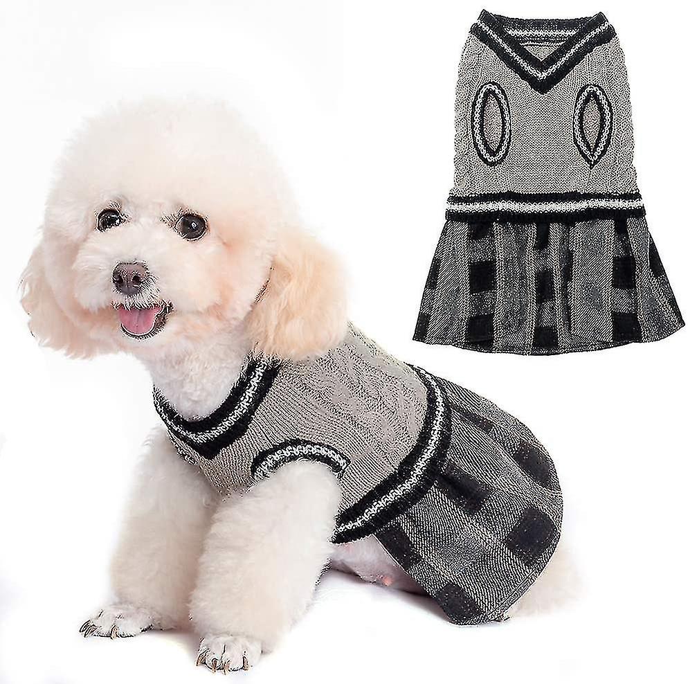 Cute Dog Jumper Dress - Warm Pullover Pet Sweater. Puppy Cat Knit Clothes With Classic Plaid Pattern For Fall Winter
