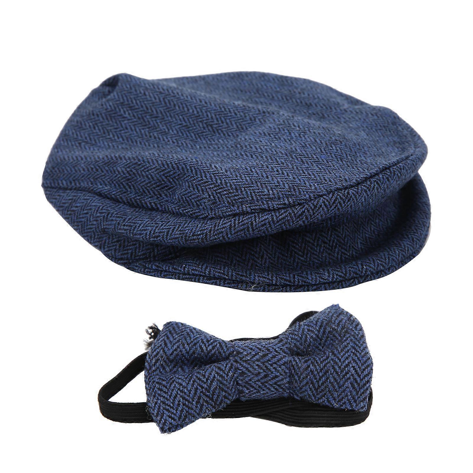 Flat Cap Gentleman Hat Bowtie Photography Prop Infant Newborn Baby Photography Props Set(Dark Blue Gentleman Hat Bowtie)