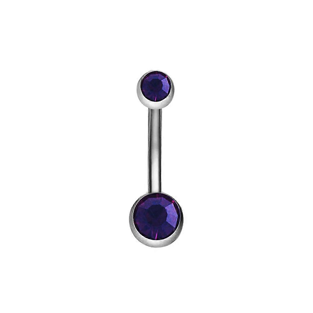 Stainless Steel Dual Rhinestone Navel Button Anti allergy Piercing Body Jewelry(Dark purple)