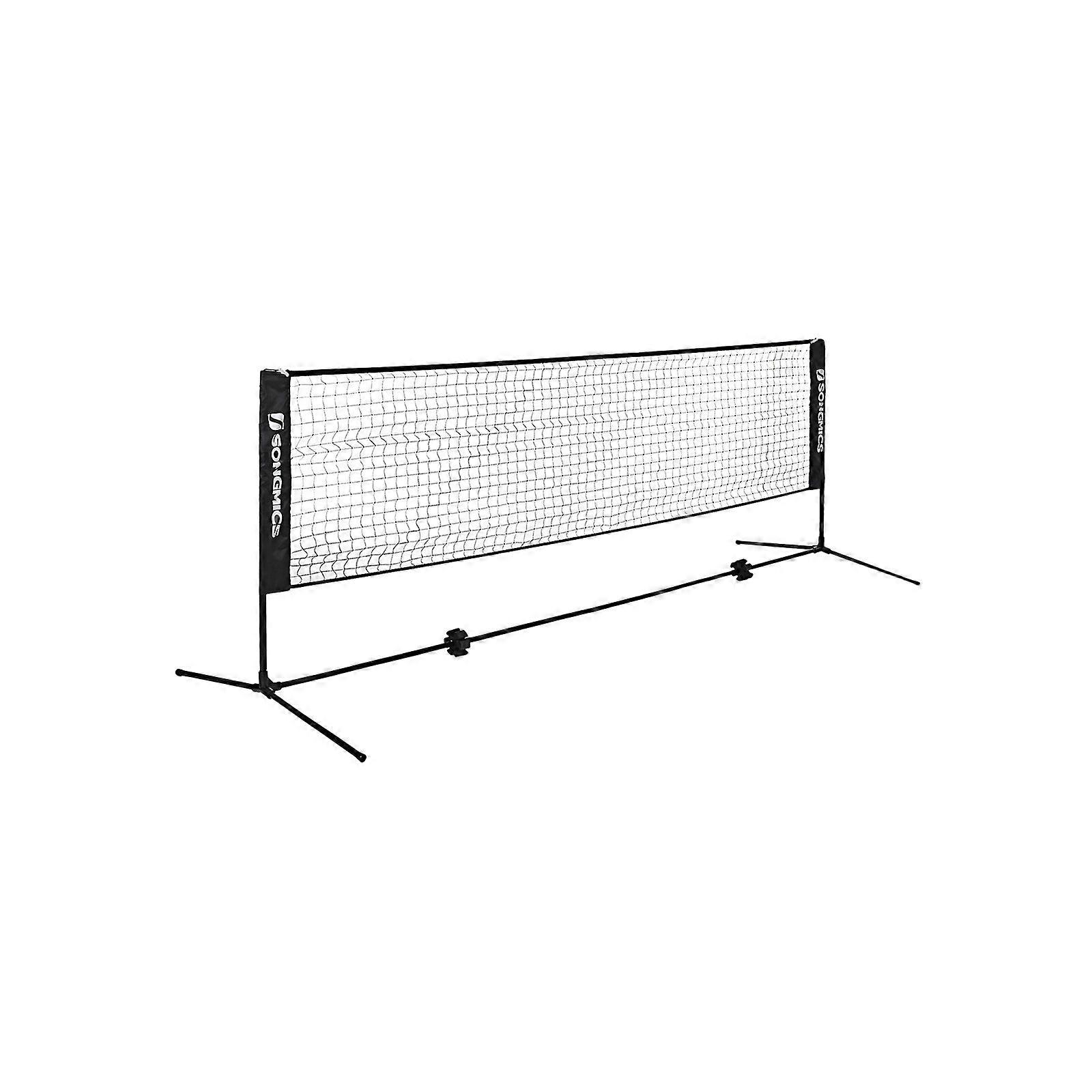 Homestorecity 5 m badmintonnet, tennisnet, in hoogte verstelbaar, set bestaande uit net, stevig ijzeren frame en draagtas - Deze set bevat een fijnmazig net en stevige ijzeren palen. Creëer in een handomdraai een veld in je tuin, achtertuin, park, strand of sportschool. Ga vervolgens achter de shuttlecock aan en geniet van een spannende badmintonwedstrijd met je vrienden of familie. Productdetails: Kleur: zwart Materiaal: ijzeren palen, PE (polyethyleen) net, Oxford-stof Afmetingen: 500 x 103 x 155 cm (L x B x H) Diameter ijzeren palen: 19 mm Gewicht: 4,8 kg Inbegrepen: 1 x badmintonnet 1 x draagtas 4 x grondpennen 1 x handleiding (DE, EN, FR, ES, IT)