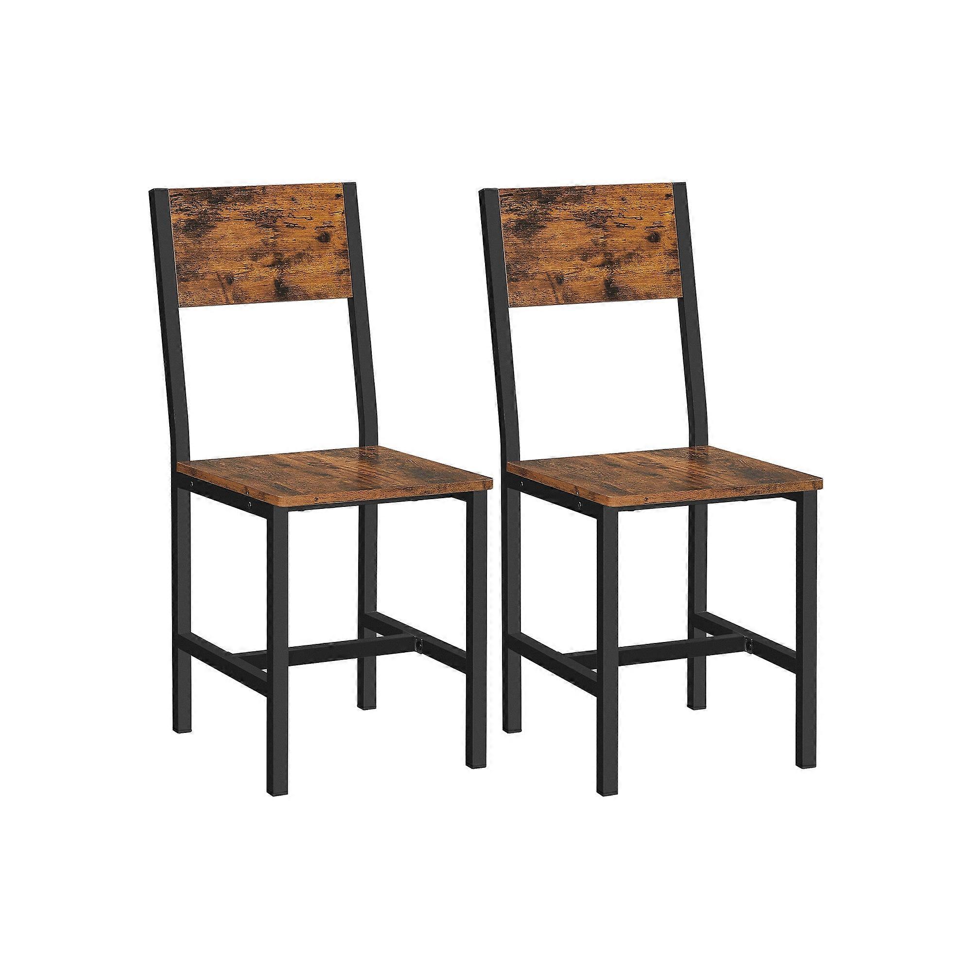 Homestorecity Eetkamerstoel, metalen frame, set van 2, industriële stijl, voor eetkamer, woonkamer, keuken, vintage bruin en zwart - Productdetails: - Kleur: vintage bruin en zwart - Materiaal: spaanplaat, staal - Afmetingen: 36,5 x 50 x 87 cm (L x B x H) - Gewicht van 2 stoelen: 11 kg - Max. statisch draagvermogen per stoel: 100 kg Leveringsomvang: - 2 x eetkamerstoelen - 1 x accessoirepakket - 1 x handleiding (DE, EN, ES, FR, IT) Homestorecity-opmerkingen: - Om veiligheidsredenen is het niet toegestaan dat kinderen op het product klimmen of ermee spelen. - Het maximale statische draagvermogen per stoel is 100 kg. Overschrijd dit maximale gewicht niet.