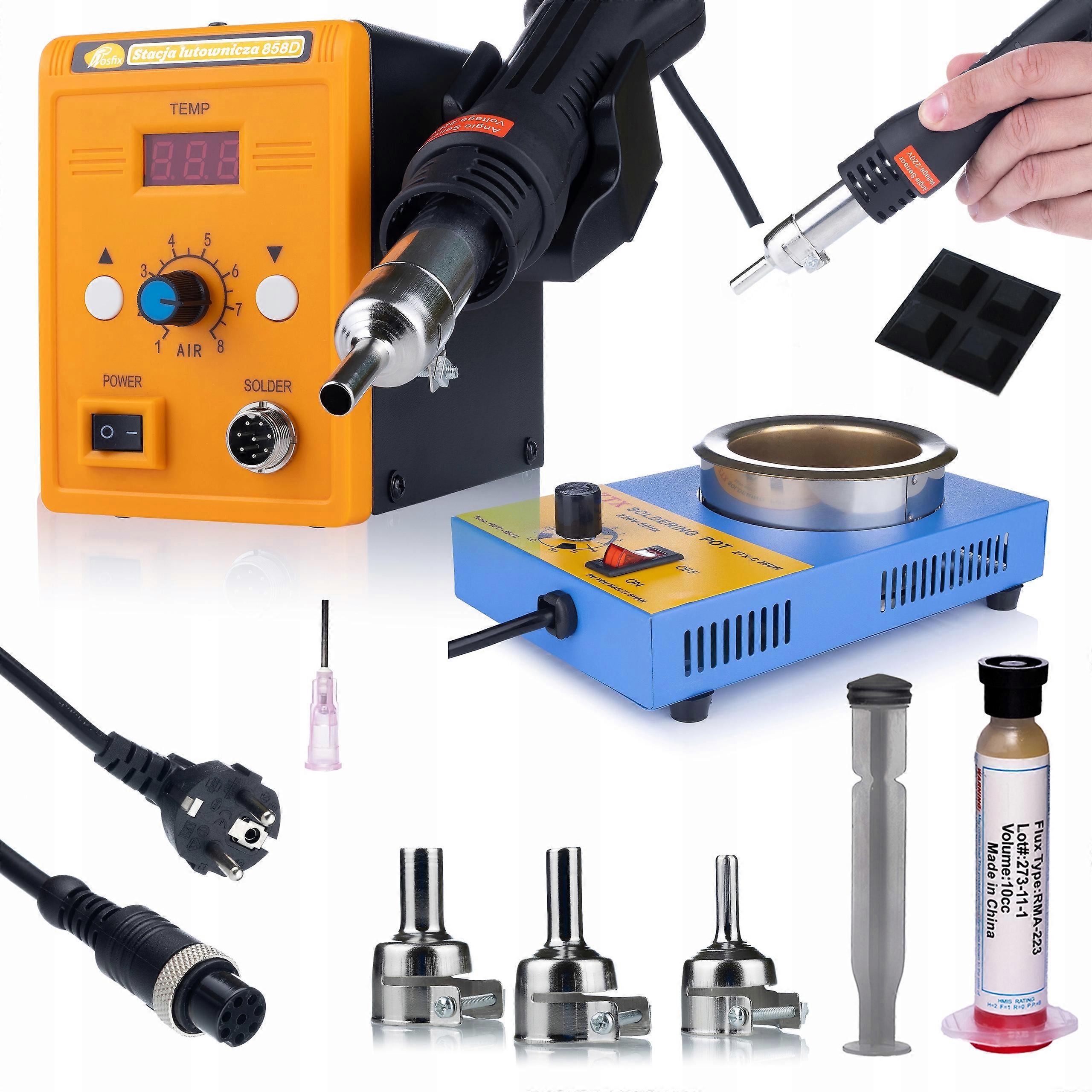 Rosfix Stacja Lutownicza Hot-Air 858D + Tygiel 280W + Topnik Rma-223 | Zestaw 3 Dysz