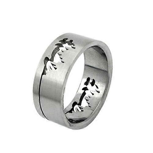 modischer Herrenring aus Edelstahl mit Lasermuster, Außenseite matt, Innenseite poliert Abmessung: 9mm Ringgröße: 64/20,4 Material: Edelstahl Preis per 1 Stck
