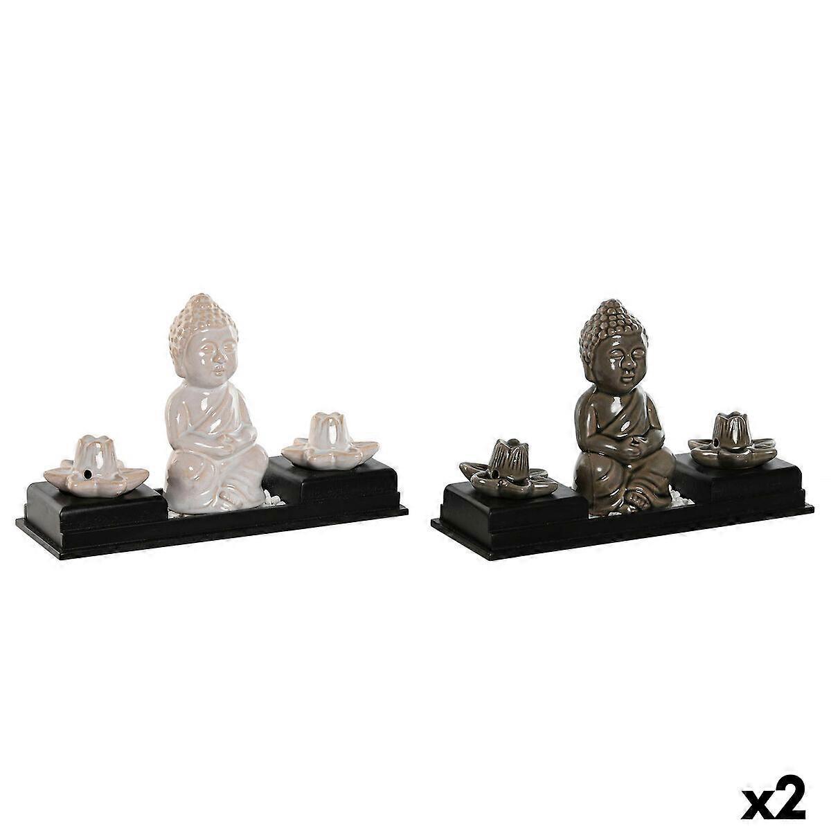 Aromalampe Home ESPRIT aus Keramik Holz MDF Buddha 24 x 8 x 14 cm (2 Stück)