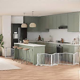 8-tlg. Hundetor mit Tür Faltbar Weiß 640 cm Pappelholz