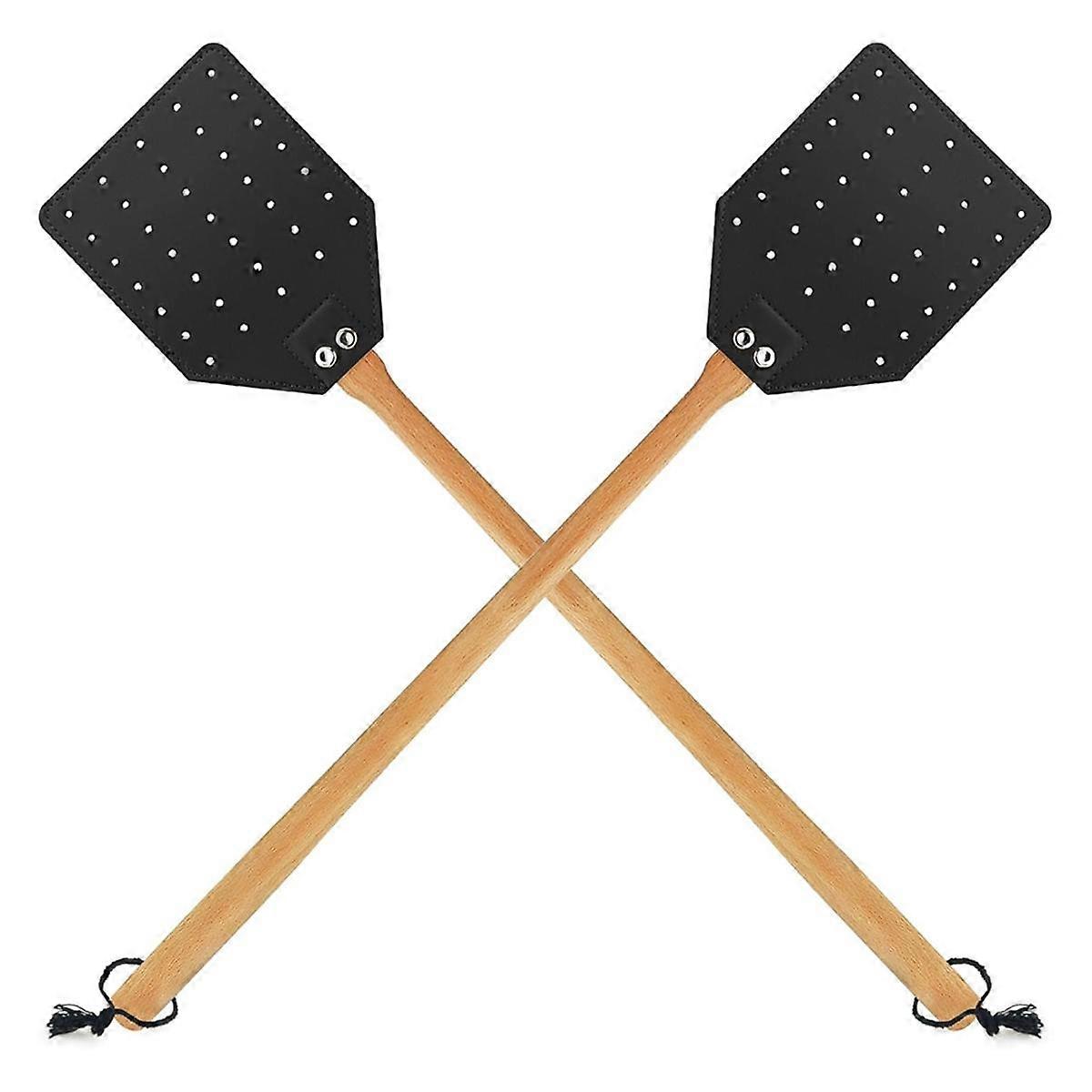 Leather Fly Swatter for Indoors/Outdoors,Duty Flyswatter with Walnut Wood Handle 19.7inch Long Fly Swatted Manual 2 Pack