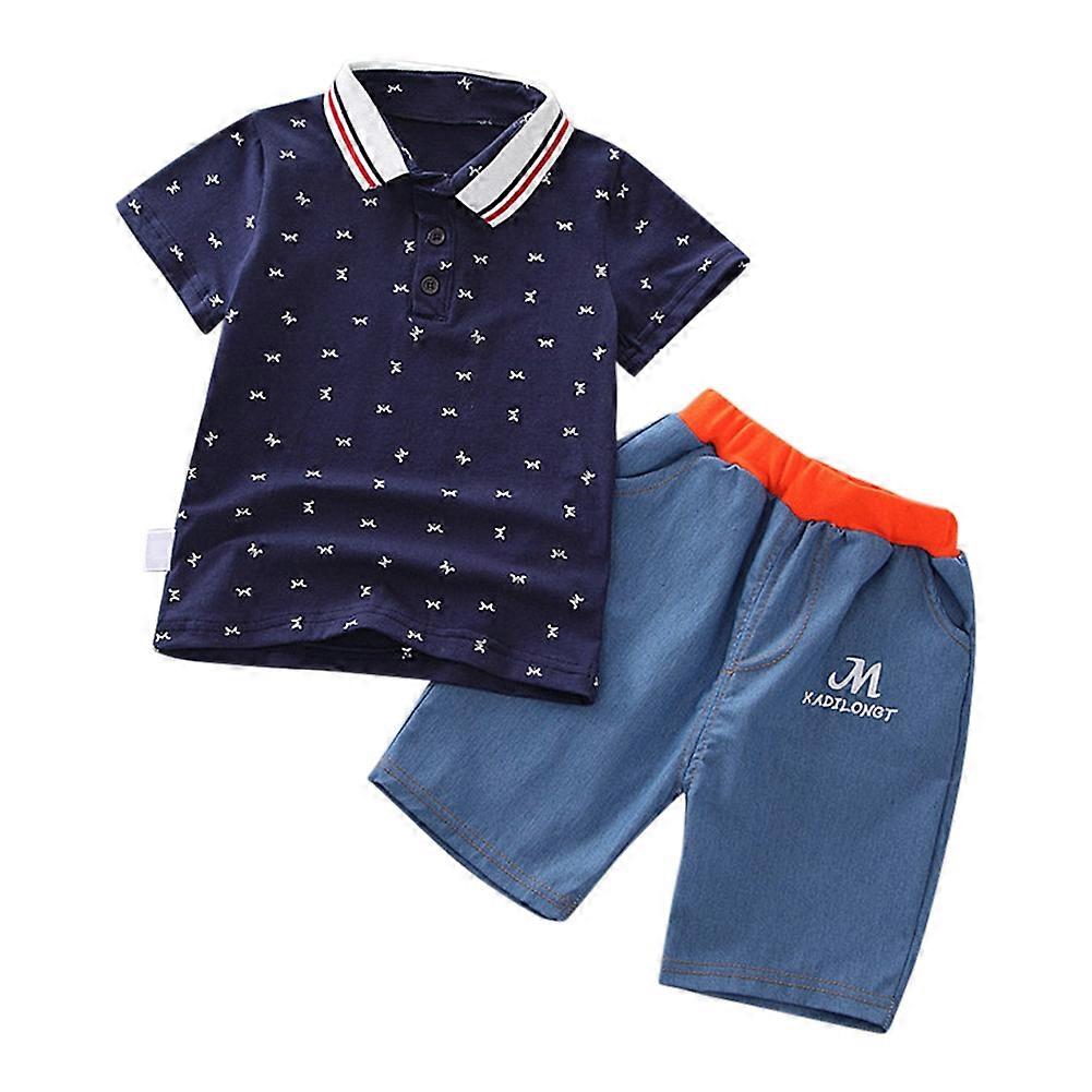 Kid Boy Casual Short Sleeve Shirt Denim Pants Children Clothes Set(Black 90)