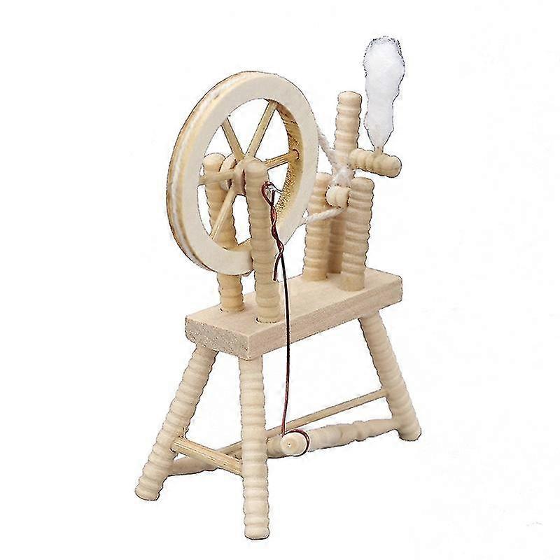 1:12 Doll House Mini Furniture Pocket Model Ornament Retro Wooden Maroon Vintage Spinning Wheel