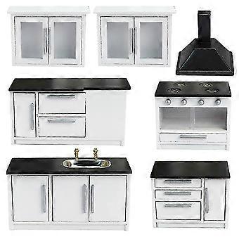 1:12 Mini Kitchen Scene White Kitchen Furniture Range Hood Carbinet Cooktop Accessories