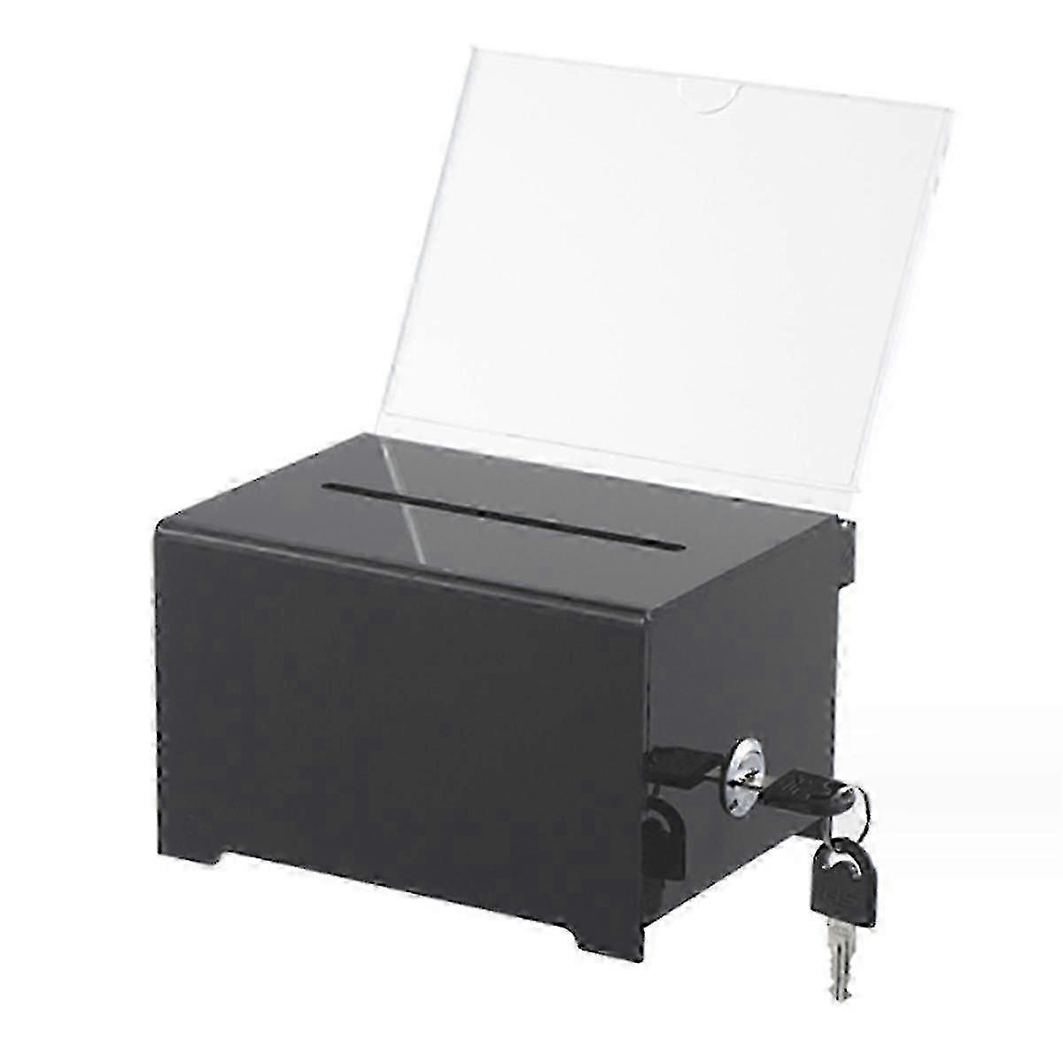 1 Pack Lockable Acrylic Donation Box with Sign Holder, Black Ballot Suggestion Box for Fundraising