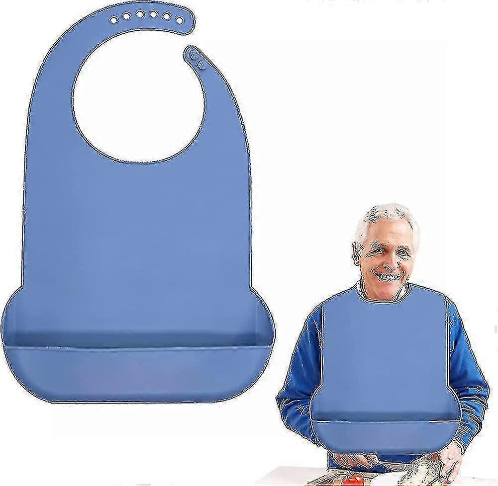 1 Pack Washable Silicone Adult Bib With Pocket Waterproof Clothing Protector