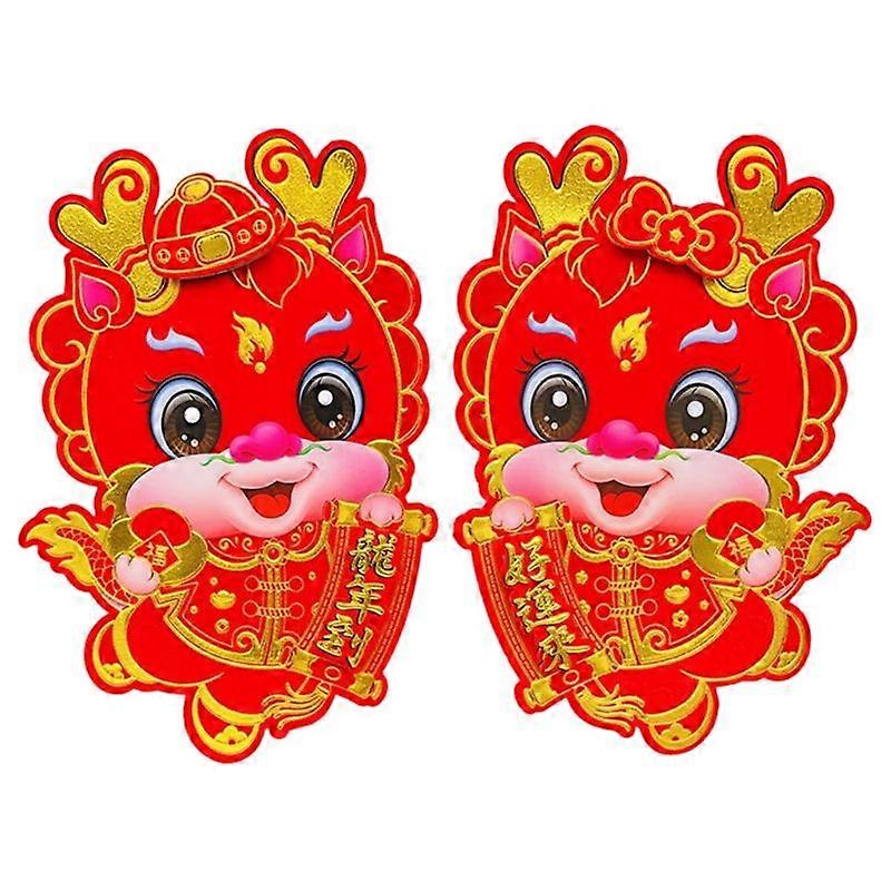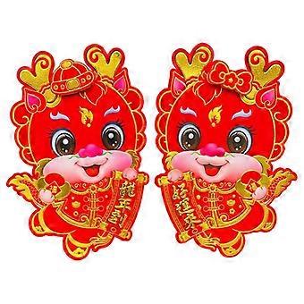 1 Pair Cartoon Dragon Door Window Stickers Chinese Spring Festival Party Decor