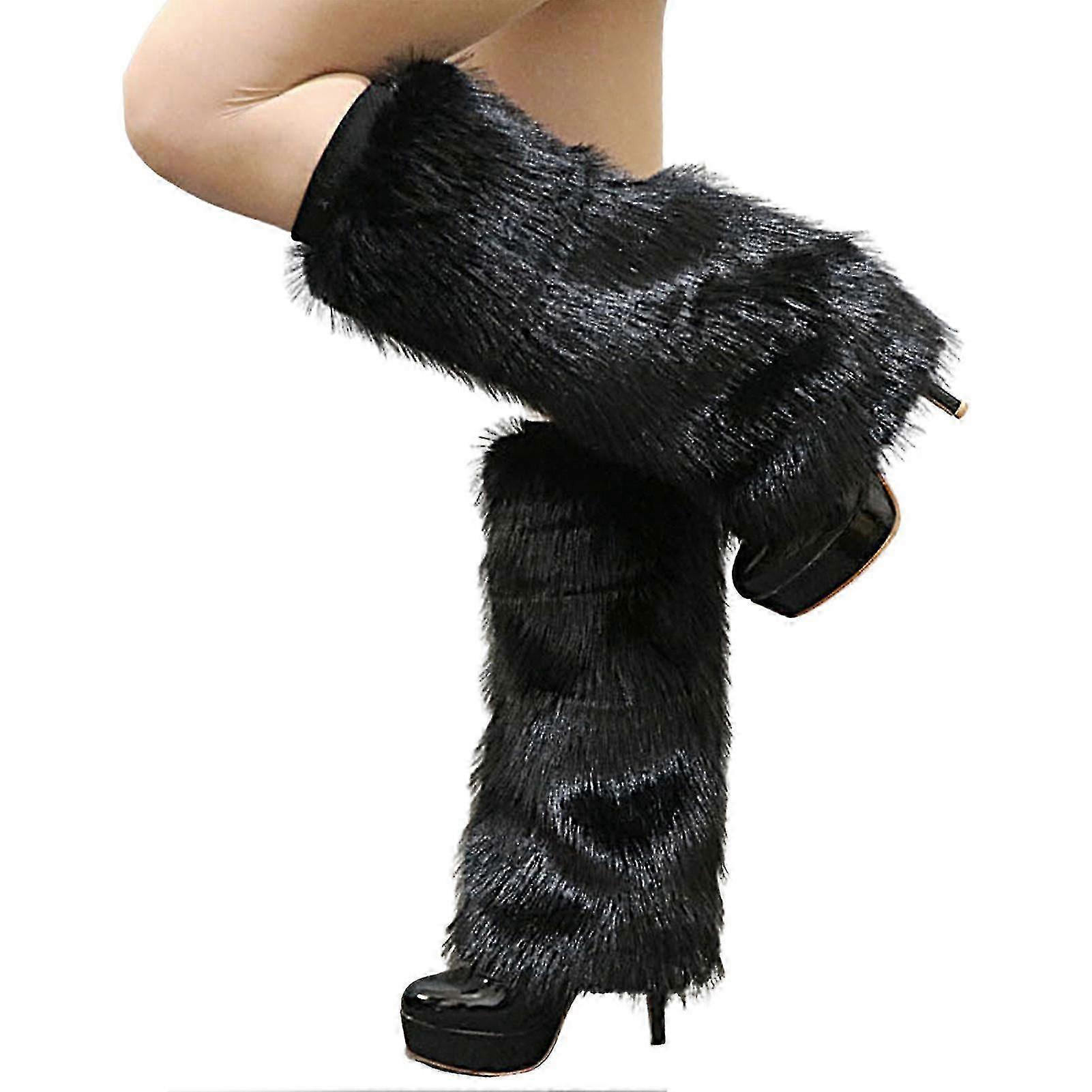 1 Pair Plush Elastic Solid Color Thick Leg Warmers Autumn Winter Women Warm Faux Fur Boot Stockings