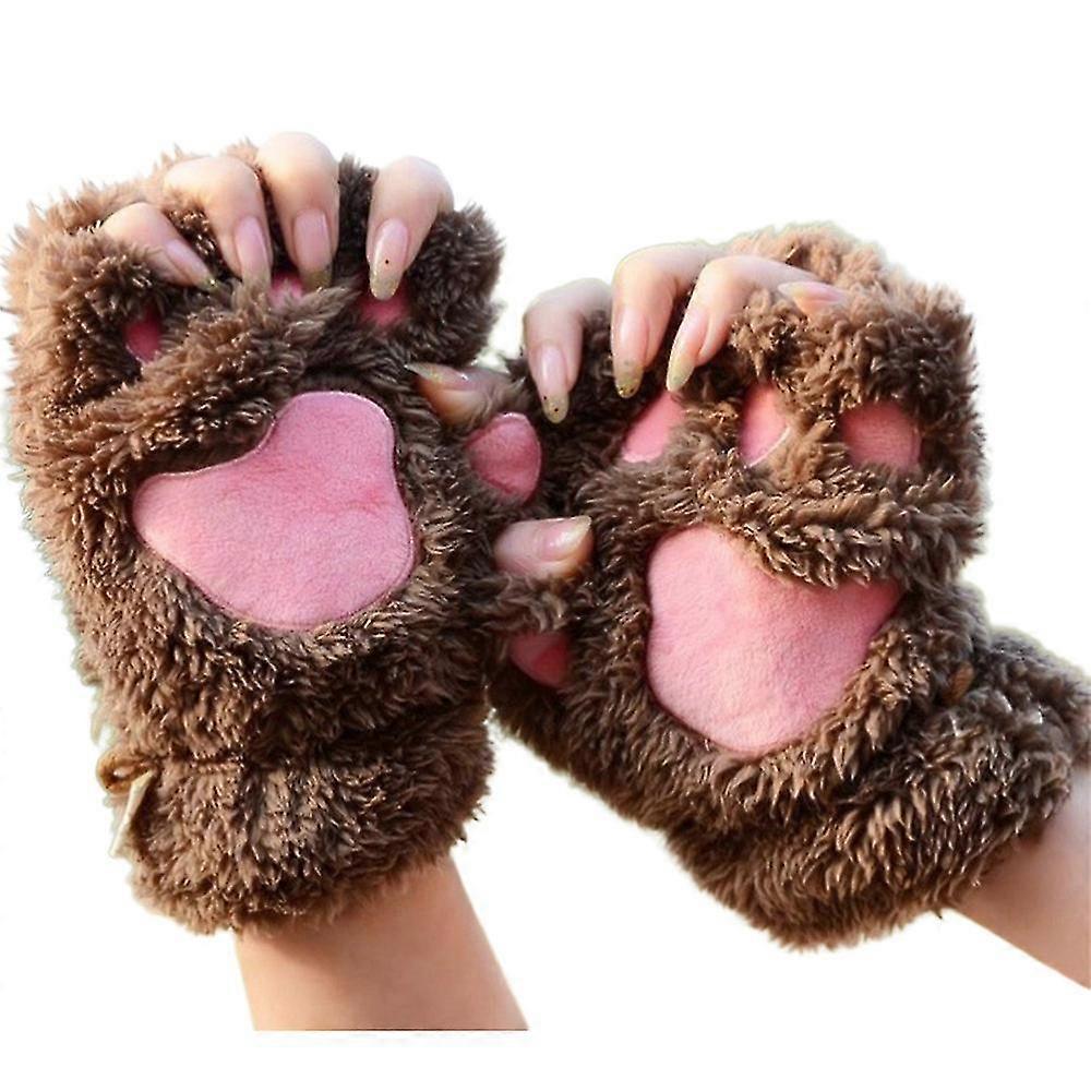 1 Pair Fingerless Teddy Bear Cat Paw Gloves Winter Soft Warm Fluffy Mittens Girls Women