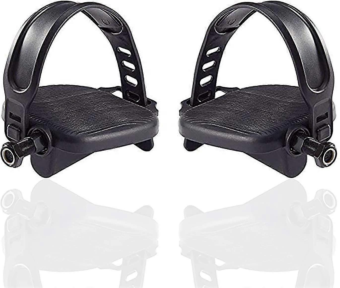 1 Pair Exercise Bike Pedals With Anti-slip Stationary Bike Straps, Black