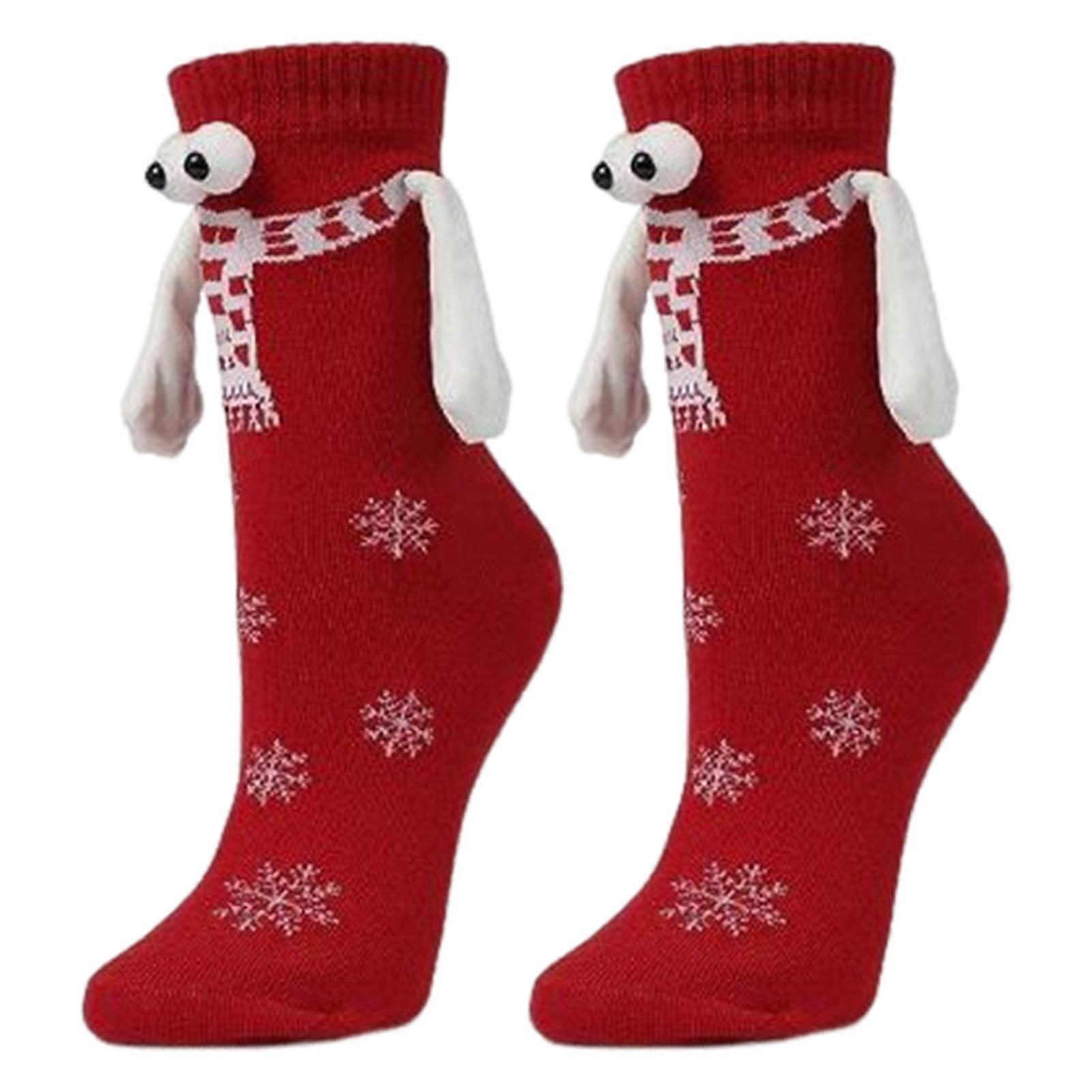 1 Pair Christmas Holding Socks Linking Couple Socks Magnetic Suction Snowflake Print Funny Big Eyes Couple Socks Couple Holding Hands Funny Socks Mid-