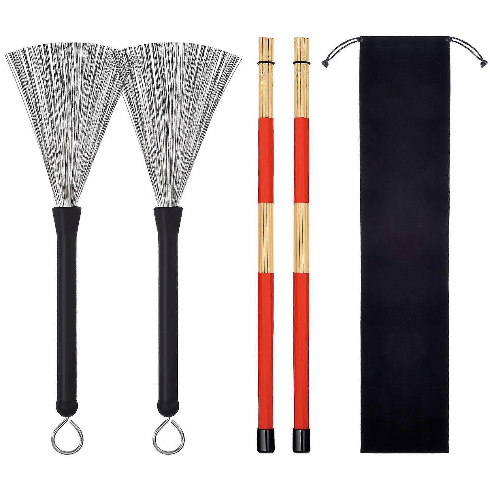 1 Pair Drum Brushes Retractable Wire Brushes Drums Drum Sticks Brush + 1 Pair Rods Drum Brushes Sti