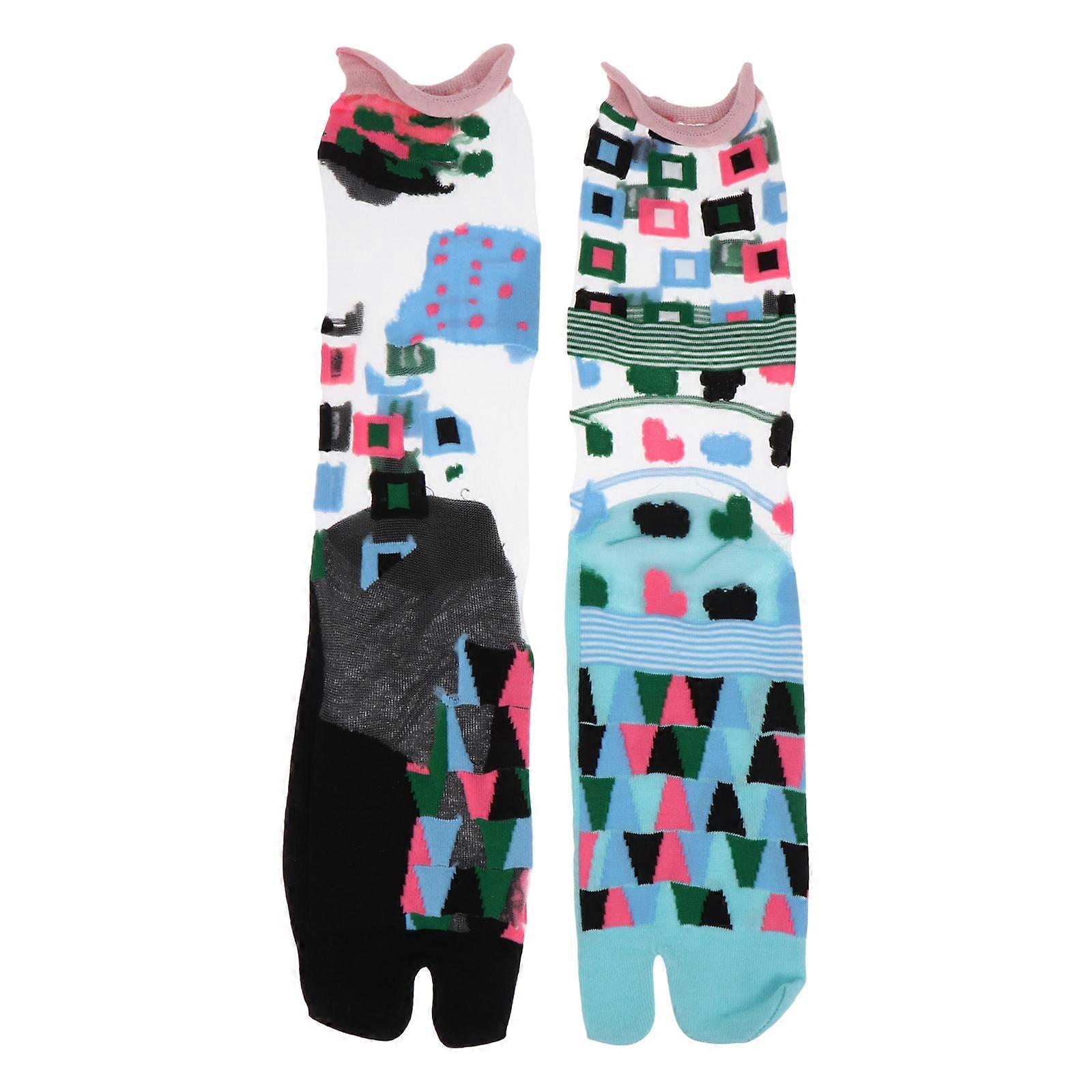 1 Pair Flip-flops Socks Stylish Printed Breathable Summer Two Toes Socks