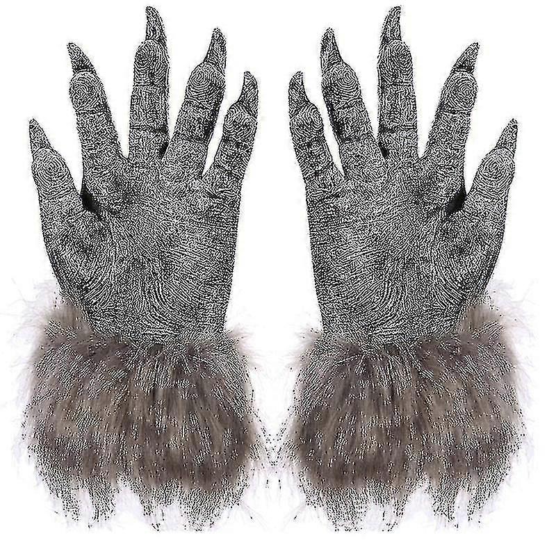 1 Pair Wolf Gloves Halloween Mask Animal Mask Set Werewolf Masquerade Wolf (size: L, Color: Black)