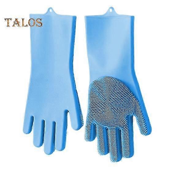 1 Pair Cleaning Gloves Anti-Scalding Reusable Silicone Dishwashing Gloves with Fine Bristles for Home
