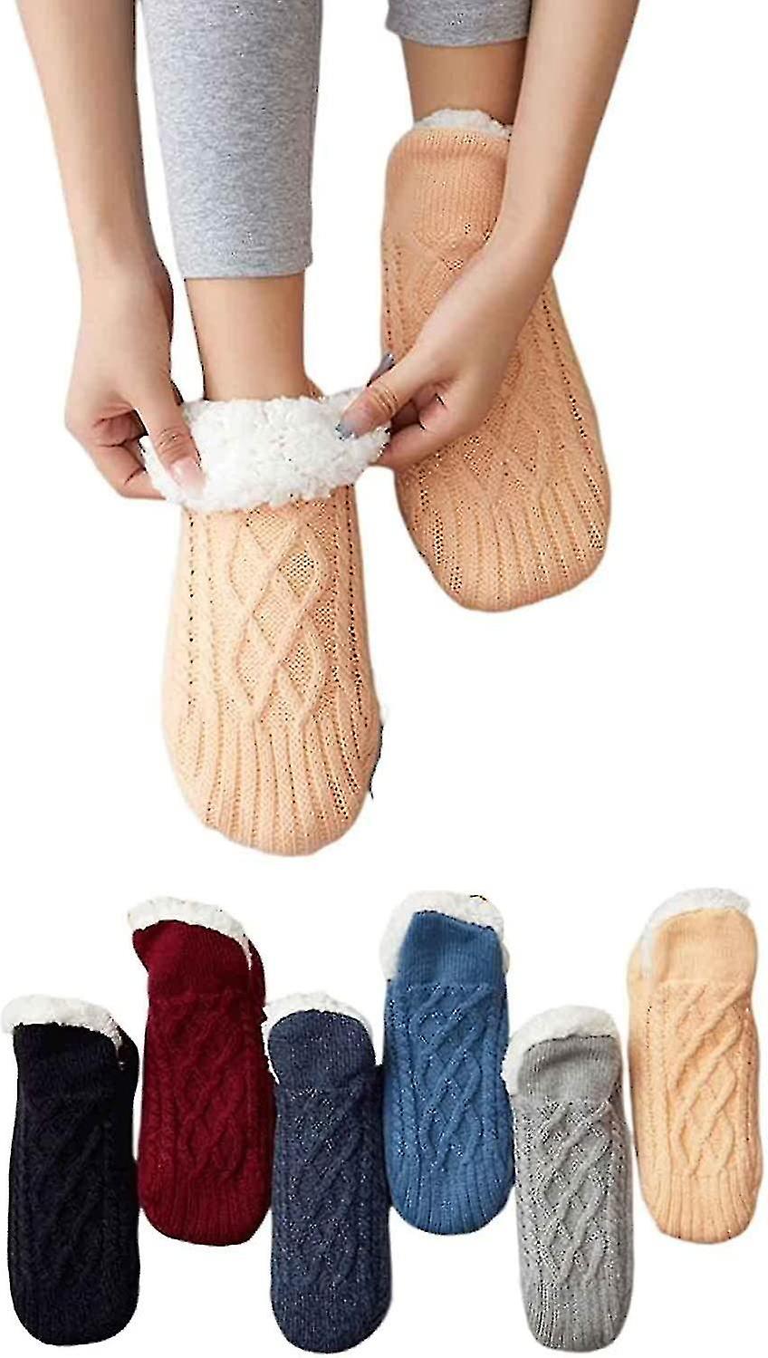 1 Pair Woven And Velvet Indoor Socks Slippers, Indoor Floor Non-slip Thermal Socks, Bye To Numbness, Swellin