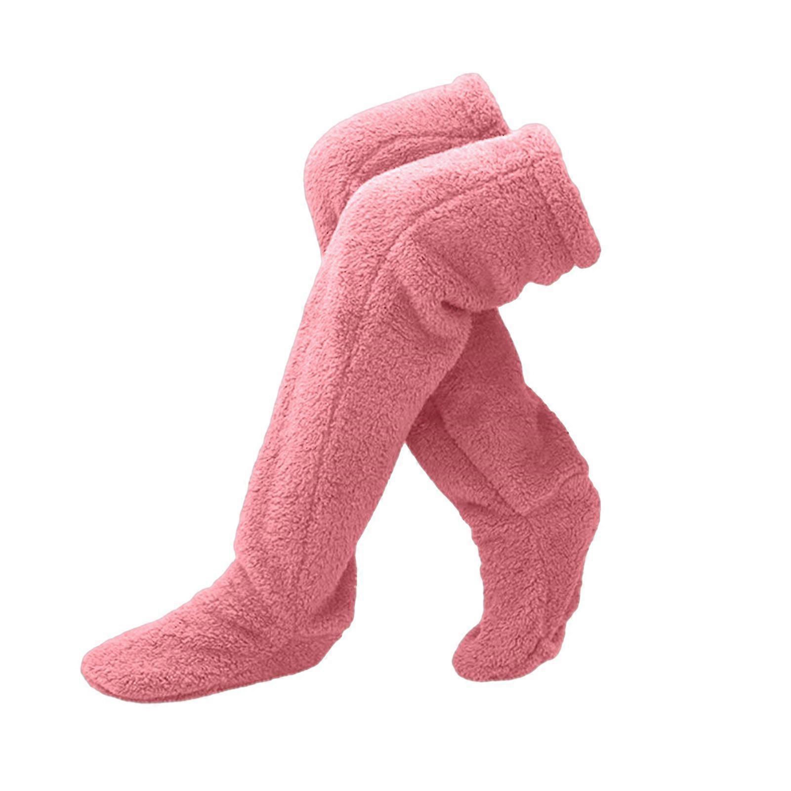 1 Pair Women Autumn Winter Over Knee Fuzzy Socks Solid Color Plush Thigh High Socks Thick Furry Boot Socks Leg Warmers