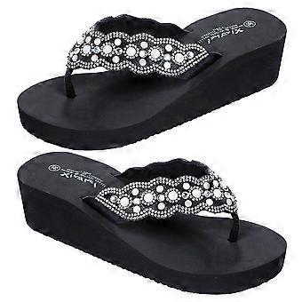 1 زوج من أحذية الشاطئ غير القابلة للانزلاق أحذية نعل اللؤلؤ أحذية الماس لفصل الصيف للنساء اللواتي يرتدين (أسود مقاس 38 24.0 سم ، 7US ، 4.5UK ، 38EU ، 9.432 بوصة)