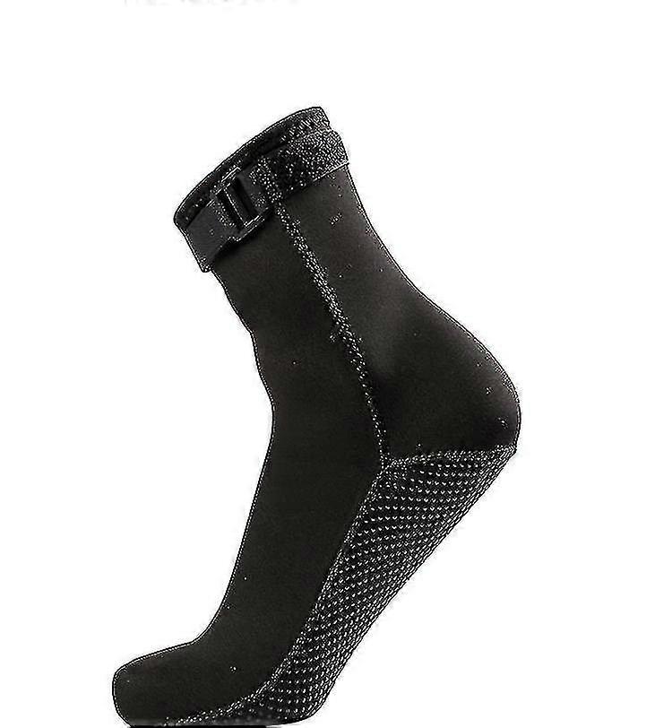 Usage Tips:Features: Material: Neoprene Heat preservation, non slip, anti scratch (rub) injury, sunscreen, friction Bottom for the management of non slip bottom, socks and the mouth of the installation of magic stick buckle Designed to keep you warm in the coldest conditions for diving, snorkeling, standup paddleboarding, kiteboarding, wakeboarding, kayaking, canoeing and other water sports Socks can be worn together with regular booties for added warmth in very cold water Thickness: 3mm XS fit for 33-35 size feet S fit for 36-38 size feet M fit for 39-41 size feet L fit for 42-44 size feet XL fit for 45-47 size feetincludes:1 Pair x Diving Socks