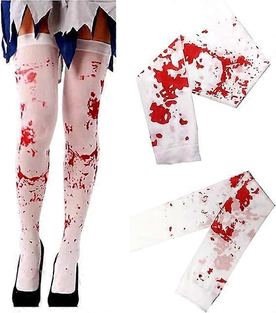 1 Pair Halloween Blood Stained Stockings Horror Over Knee White Tights Masquerade Stockings Props Dress Up Socks Fancy Hold Up Stockings