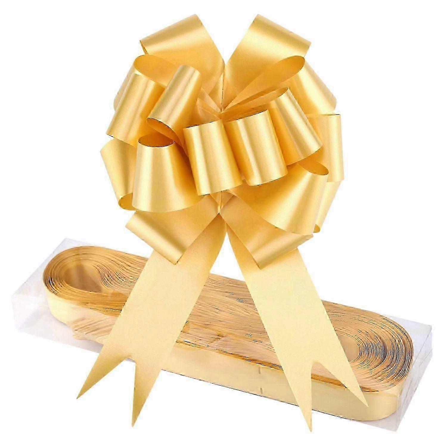 1 Box 30 Pack Golden Large Ribbon Pull Bows for Party Wall,Gift Wraps,Christmas ,Wedding and Doors(13X16CM)