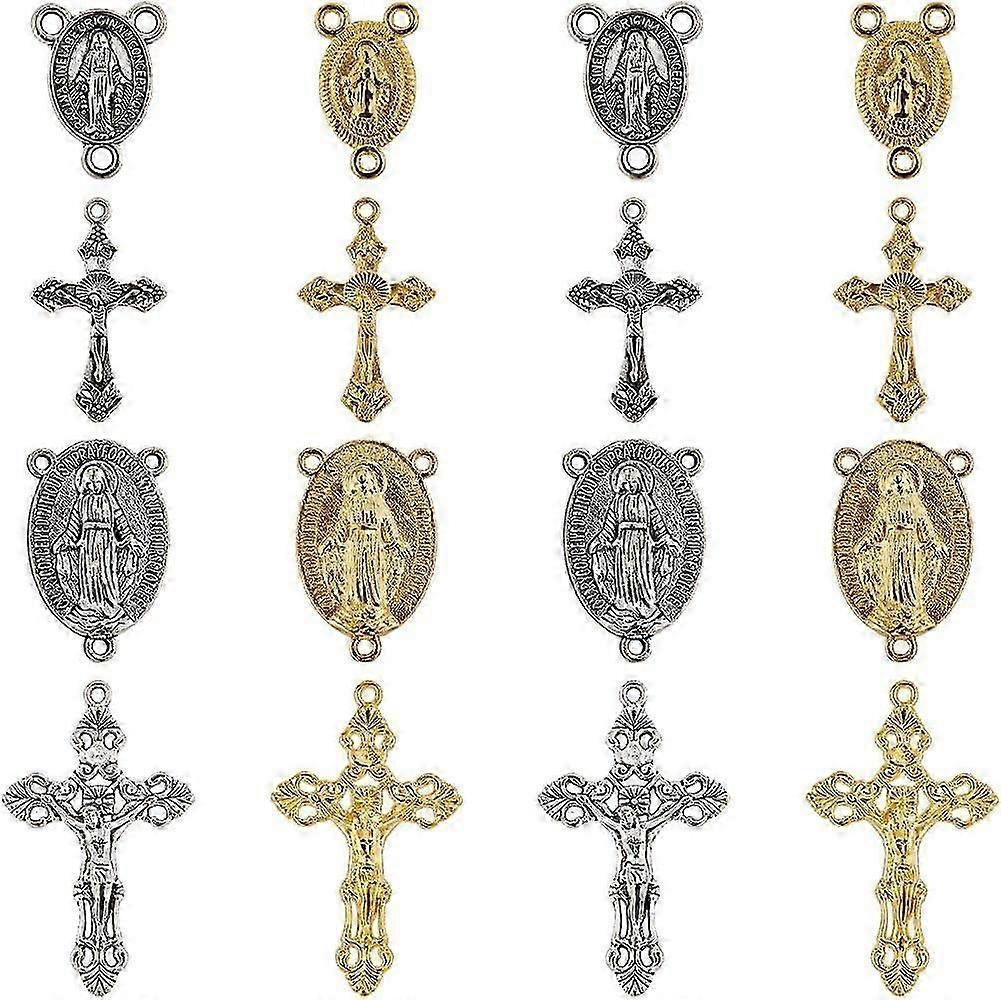 1 Box 40Pcs 8 Styles Rosary Cross Charms Silver Crucifix Rosary Charm Easter Holiday Gold Tibetan Alloy Oval Chandelier Links Charm for Jewelry Making