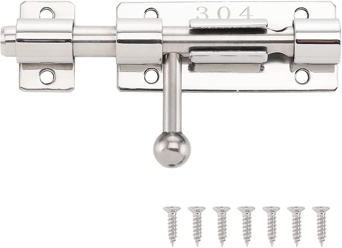 1pcs,bolt Door Latch With Padlock Hole, Thickened 304 Stainless Steel Slide Door Lock, 4 Inch, Silver