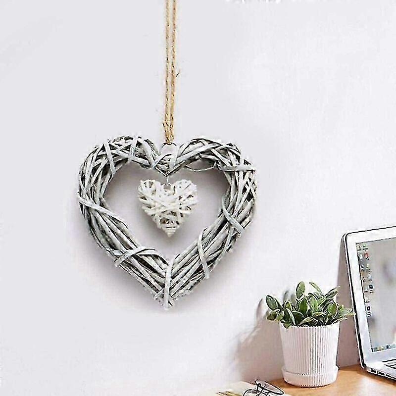1pcs Rattan Hanging Decorative Hearts White,Rattan Hanging Decorative Hearts Heart Shape Sweet Hanging Decoration Rattan Wreath Birthday Party Decorat