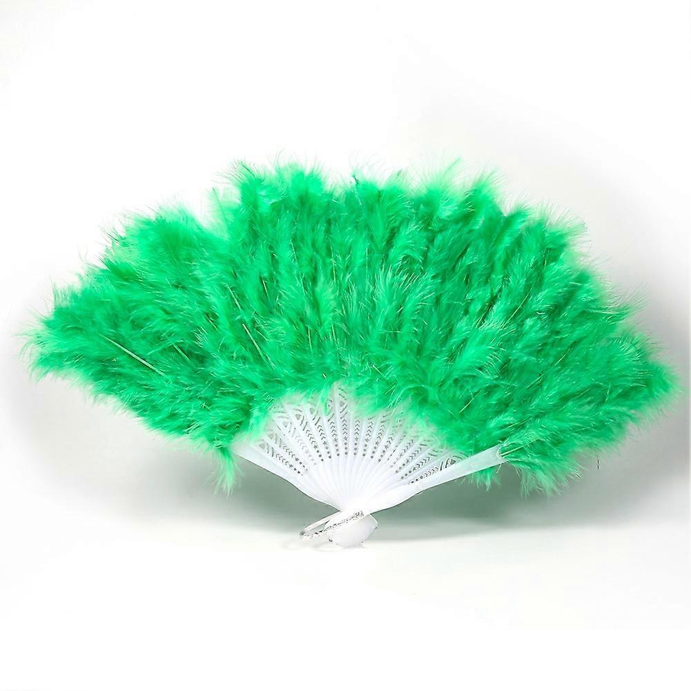 1Pc Women Feather Fan Children Fancy Dance Props Hand Folding Wedding Lovely Green