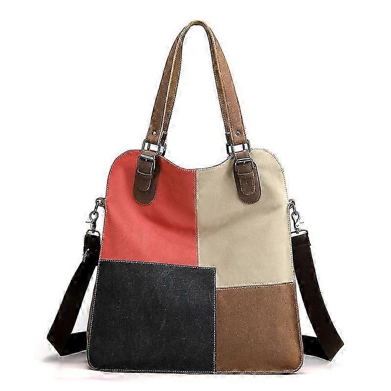 1pc Large Canvas Bag Ladies Shoulder Bag Vintage Stitching Handbag Large Capacity Fashion