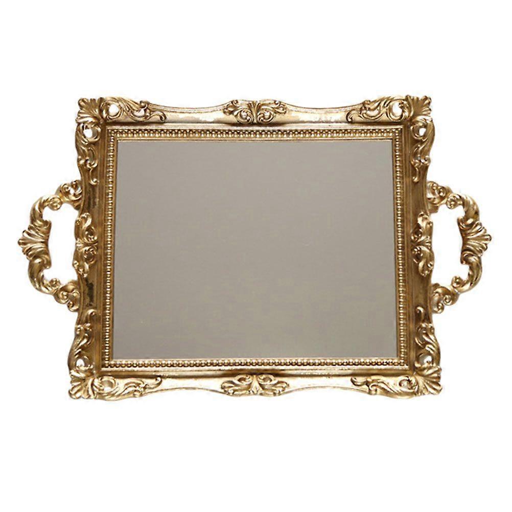 1PC Vintage Carved Mirror Tray Wedding Dessert Table Storage Adornment (Golden)