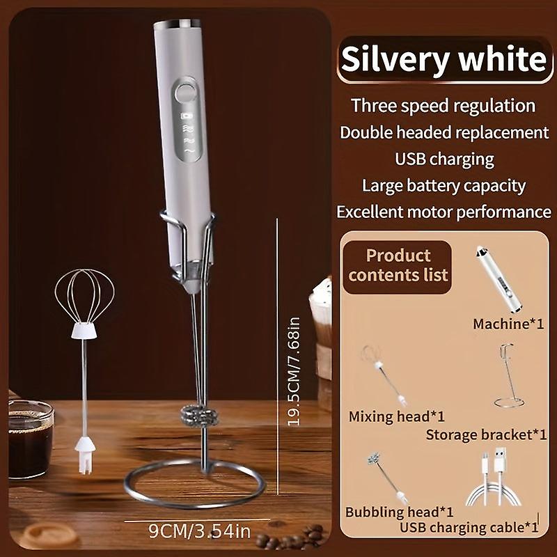 1Pc Electric Milk Frothers 2 In 1 Exchangeable Stirring Heads Handheld Electric Milk Frother 3 Speeds Coffee Mixer Egg Beater