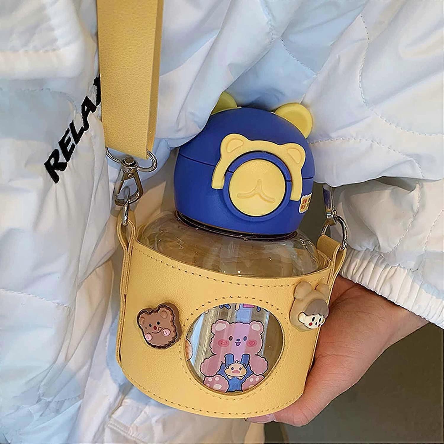 1pc Kawaii Water Bottle Kawaii Bear Water Bottle Cute Pot Belly Cup with Cup Sleeve with Straw Portable Cute Water Bottles Kawaii