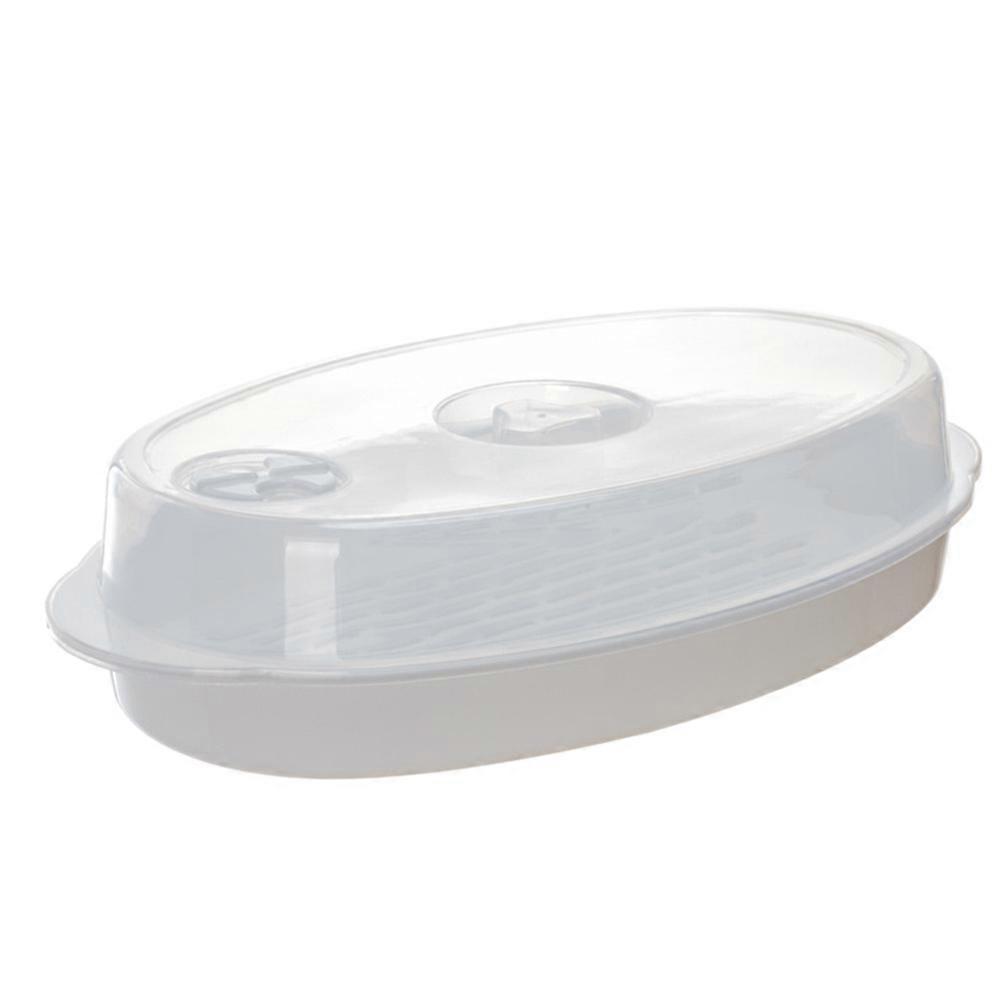 1pc Food Steamer Plate Microwave Oven Steamer Kitchen Plate with Lid (White)