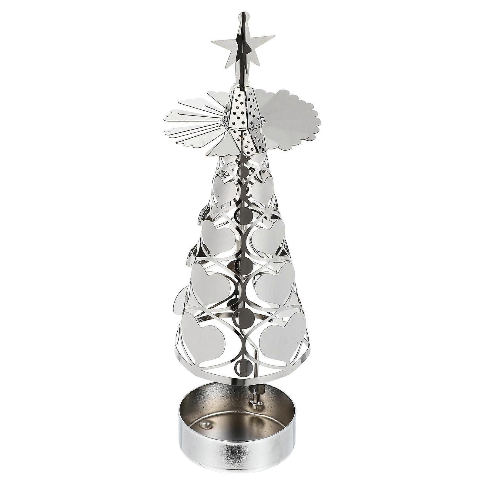 1Pc Xmas Tree Shape Candlestick Rotatable Xmas Candle Holder Party Decor Silver