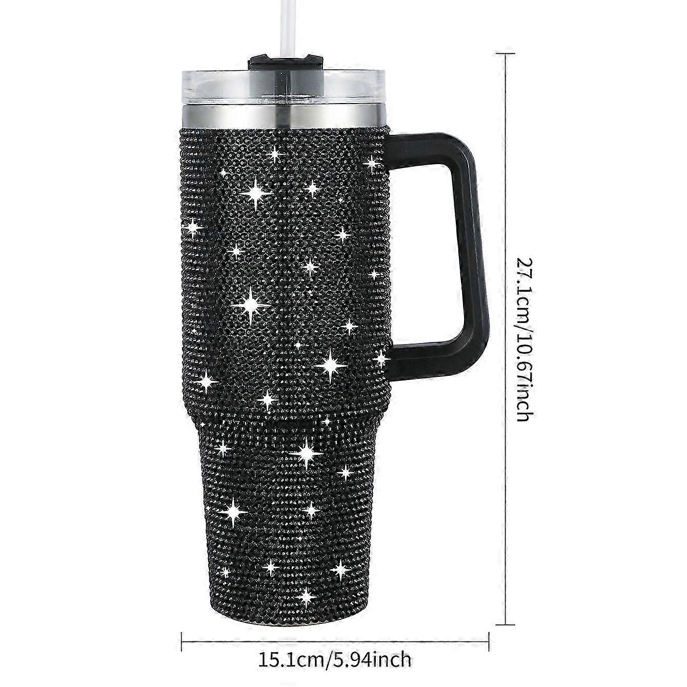 1pc Shiny Rhinestone 40 Oz Tumbler With Handle, Stainless Steel Insulated Travel Coffee Mug Double Wall Leak Resistant Vacuum Tumbler With Straw Porta