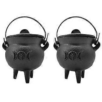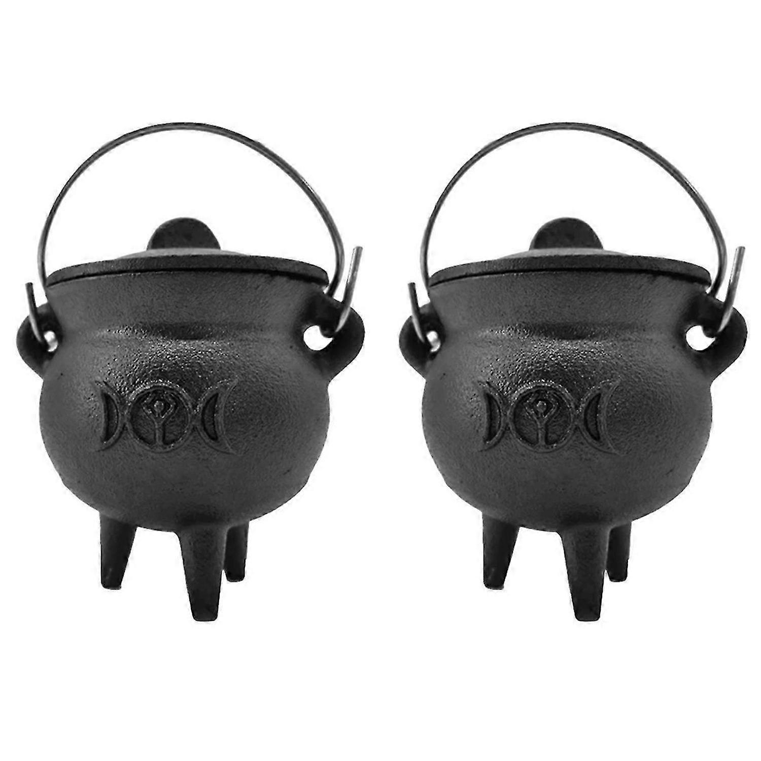 1Pcs Iron Cauldron with Lid Handle Moon Phase Witch Pot Incense