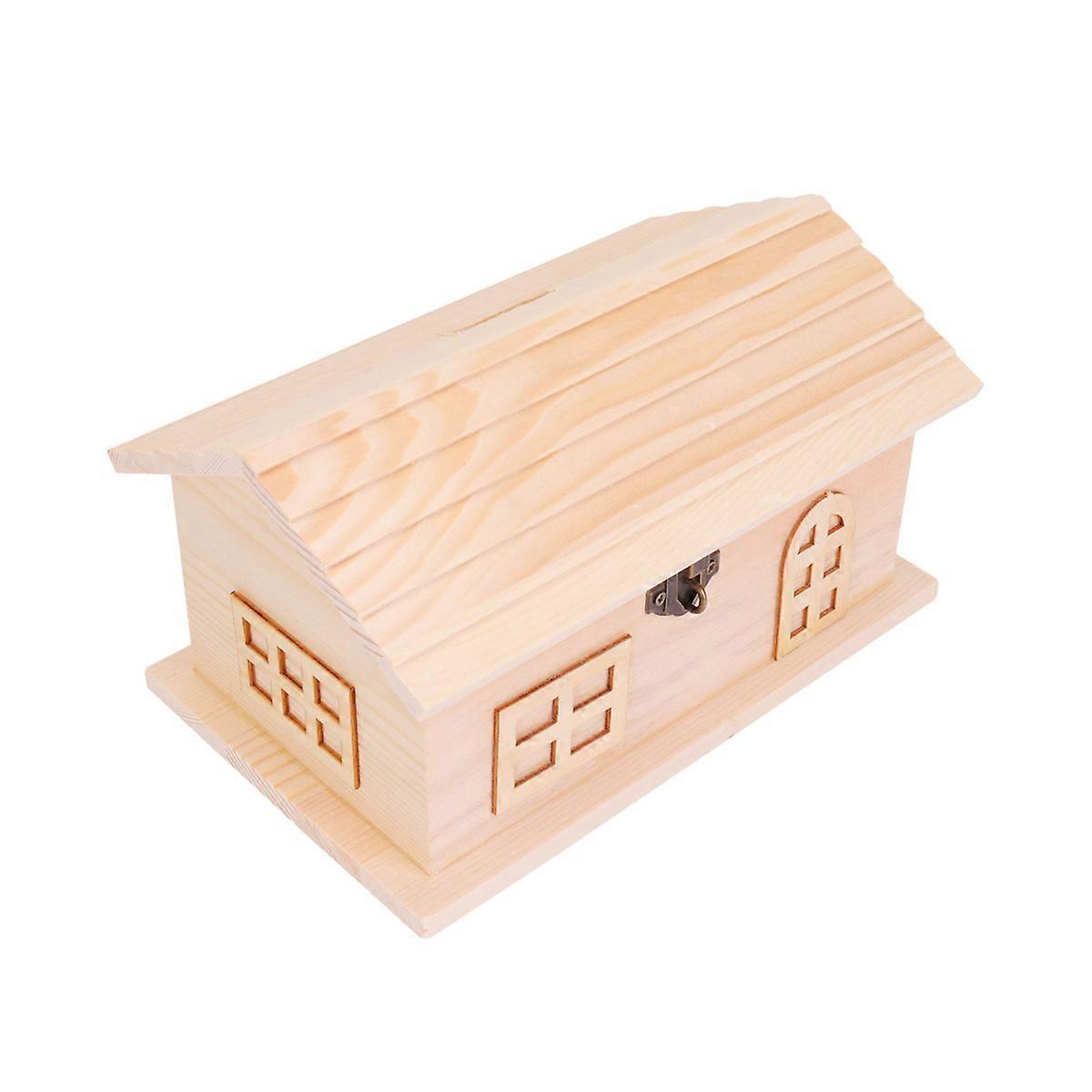 1Pc Wooden House Shaped Piggy Bank Money Saving Box Creative Coin Bank DIY Creative Educational Toys