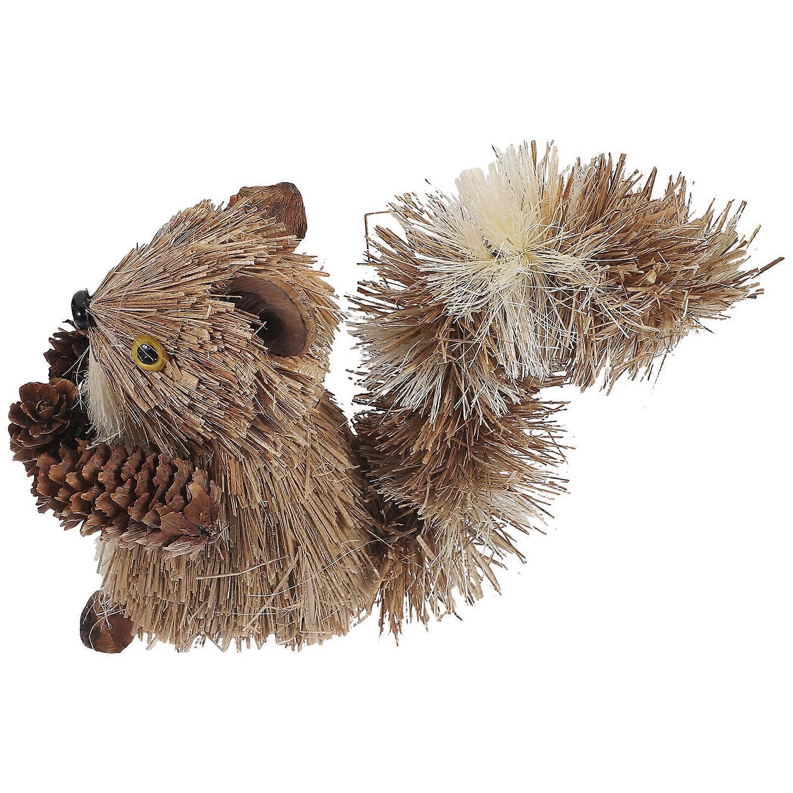 1pc Woven Straw Squirrel Desktop Decoration Animal Ornament Christmas Landscape Decor