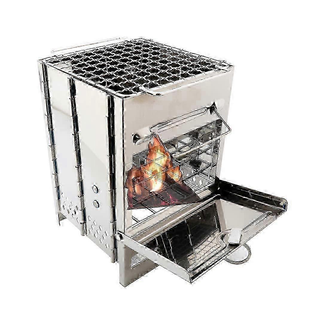 1 Piece Foldable Stainless Steel Camping Stove with BBQ Mesh, Twig Stove for Outdoor Hiking and Travel Picnics