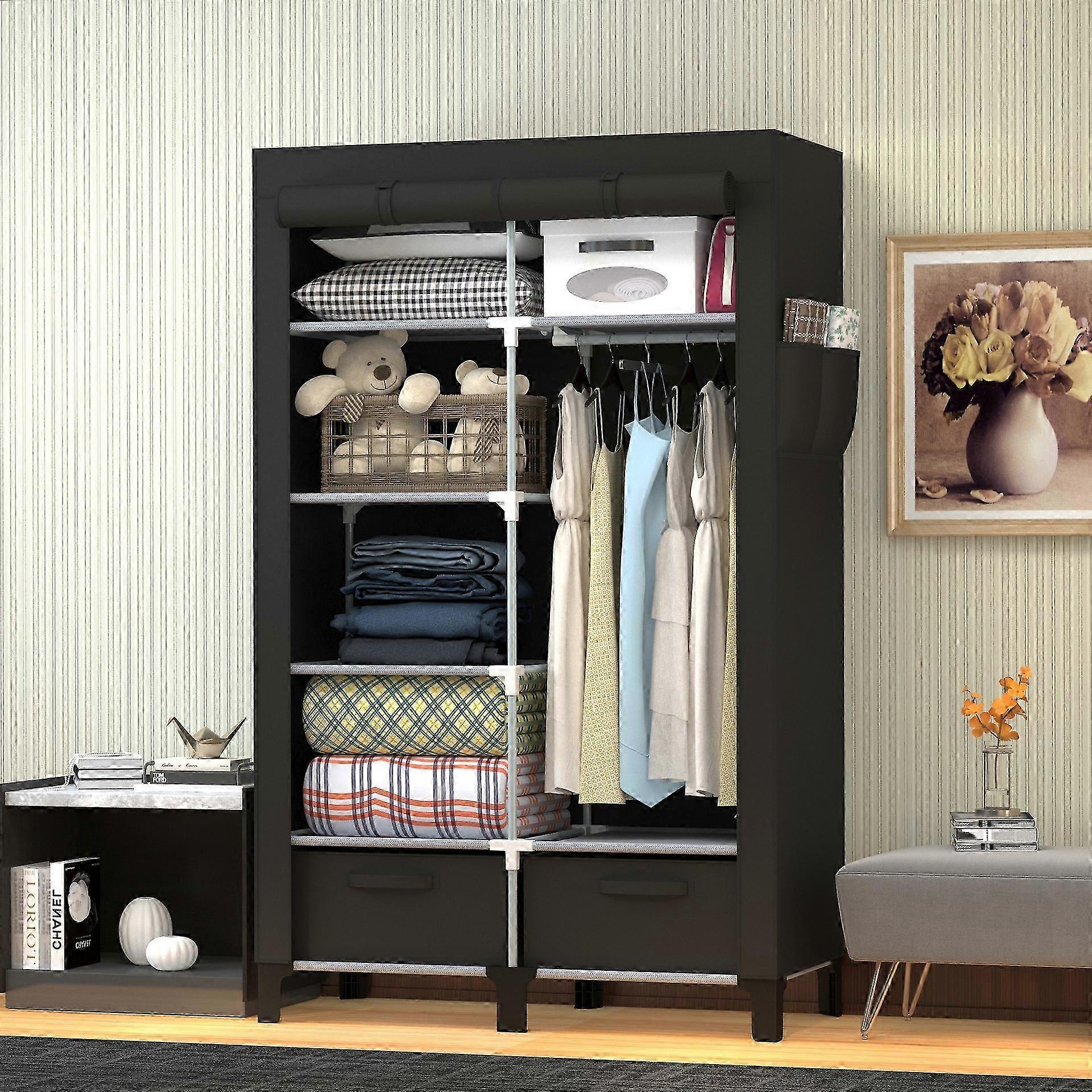 1pc 2-line Metal Large Clothes Cabinet With 2 Drawers, Stable Easy Assembly Closet, Space Saving Organizer For Entryway, Bedroom, Living Room