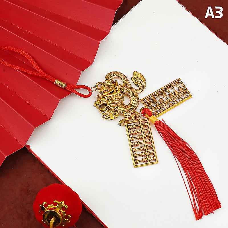 1pc 2024 Year Of The Dragon Gold-plated Plastic Zodiac Dragon Pendant Lucky Mascot Home Car Hanging Ornaments New Year Gifts