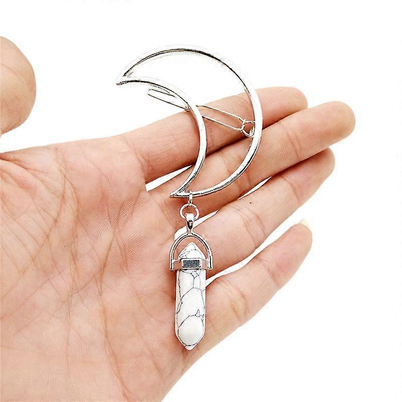 1 Pcs Women Vintage Alloy Moon Hair Clip Natural Stone Pendant Charms Clamp Hairpin