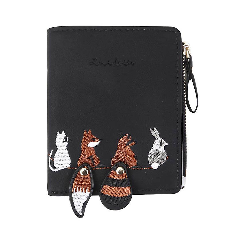 1pcs Black Pu Leather Hasp Zipper Mini Coin Card Holder Cartoon Printing Short Women Wallets Pocket Animal For Girls
