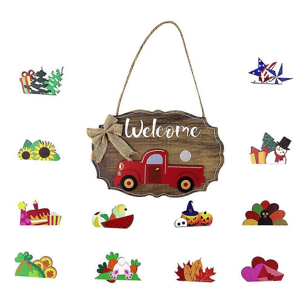 1 Set Pastoral Style Pendant Wooden Welcome Board Pendant Scene Adornment